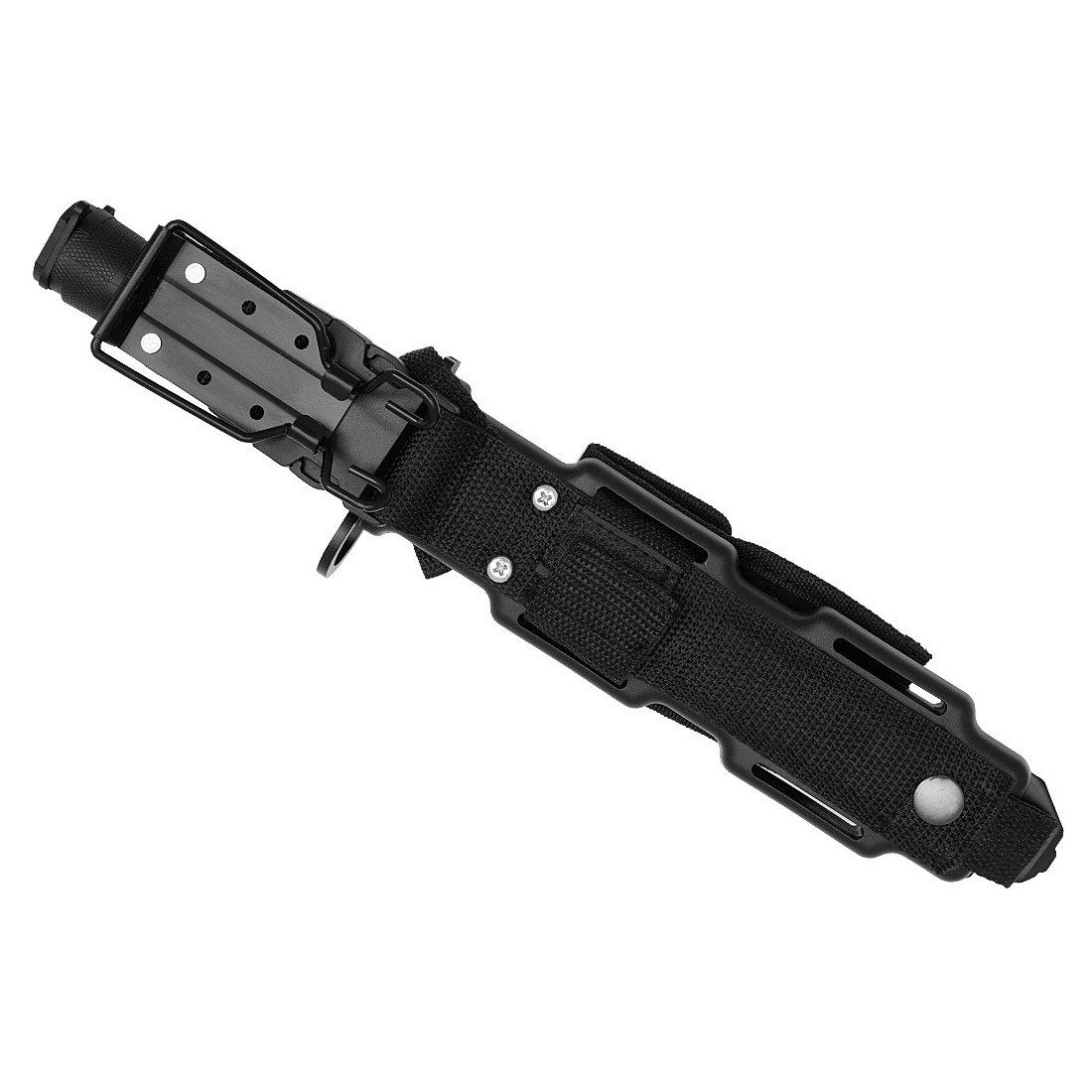 Nóż posiada klasyczny dla bagnetu M9 mechanizm mocujący do karabinu oraz pierścień jelca do założenia na lufę.