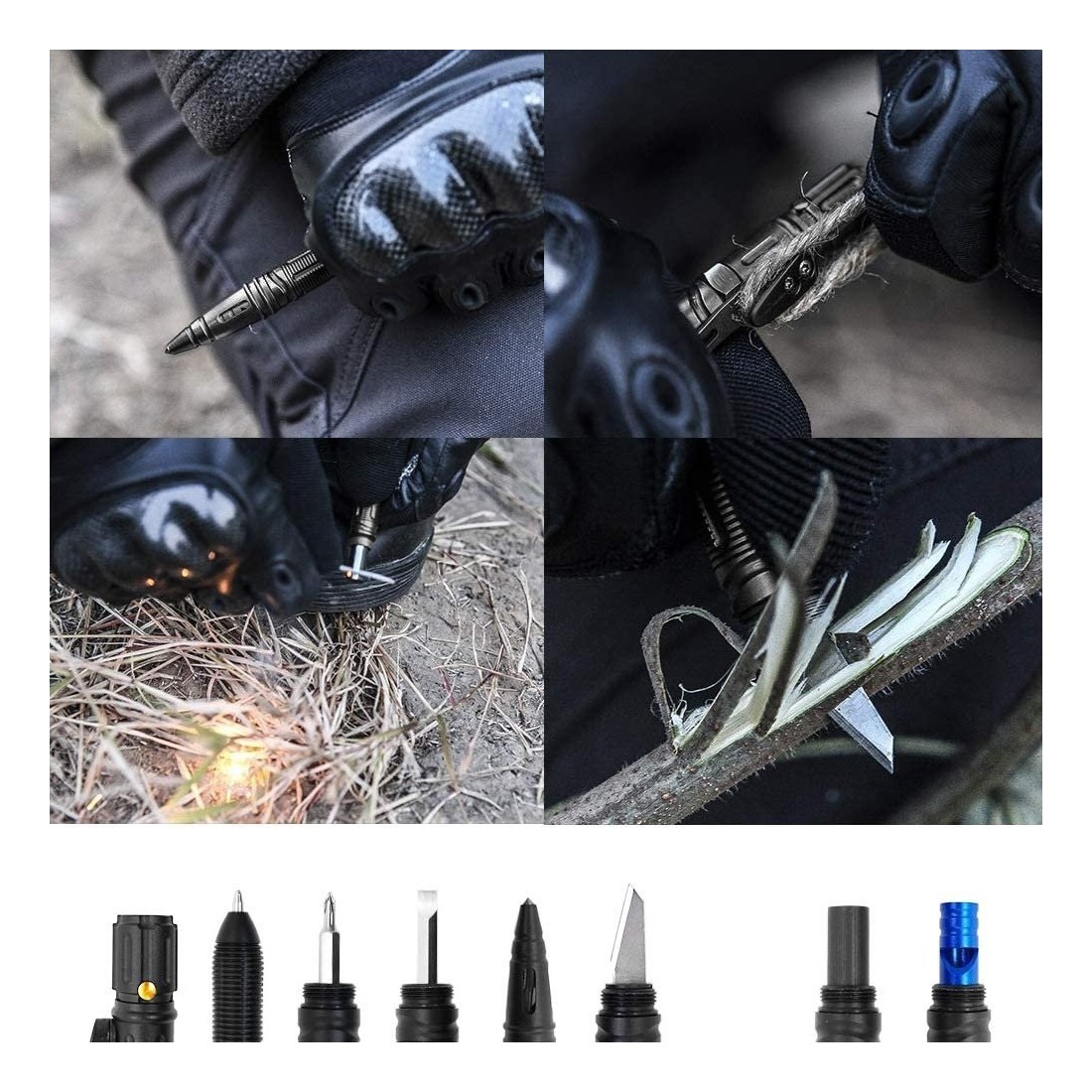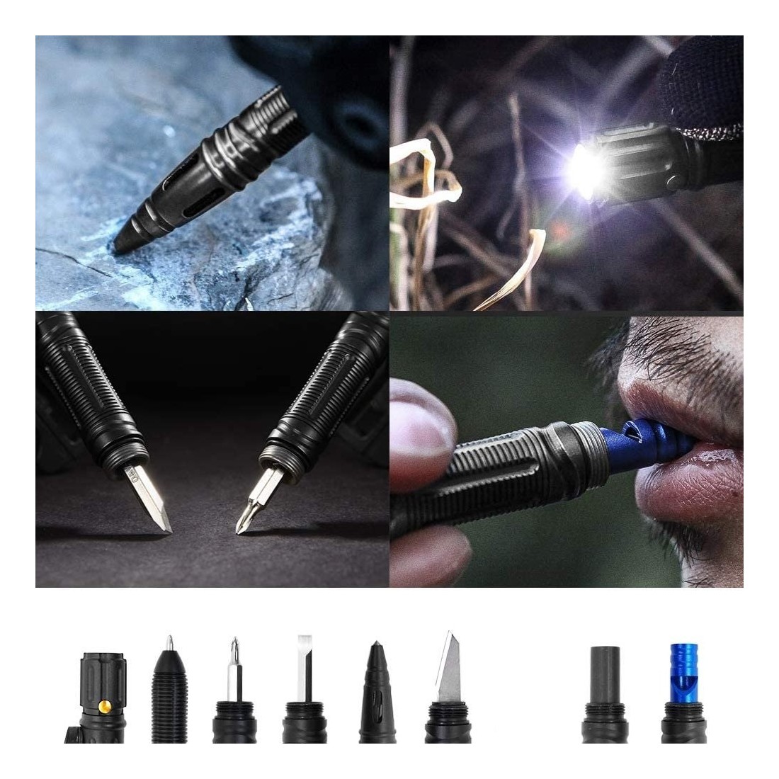 Znajdują się w nim funkcjonalne krzesiwo, gwizdek alarmowy, niezwykle ostry nożyk, śrubokręt płaski oraz śrubokręt krzyżakowy.