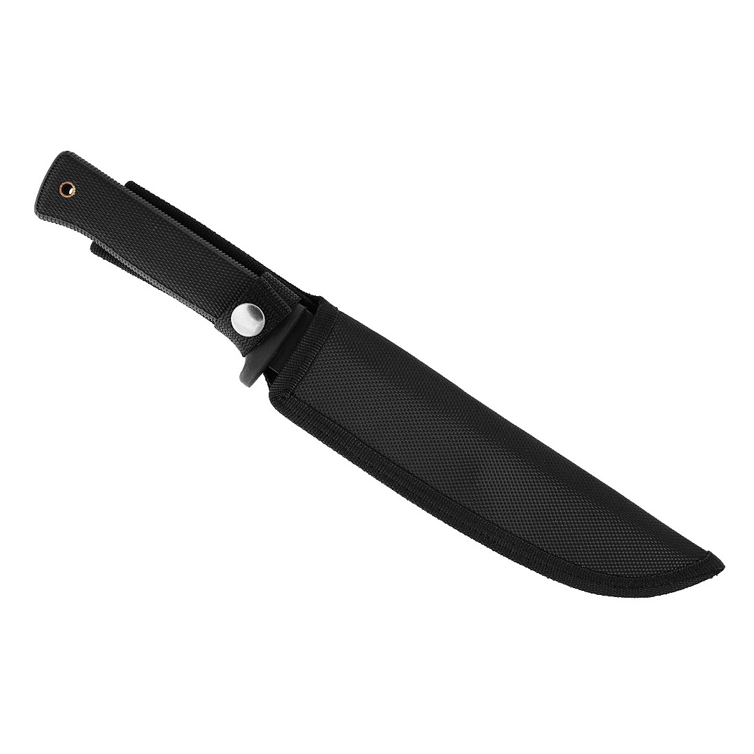 W komplecie znajduje się czarny pokrowiec z cordury, który można przypiąć do paska — dzięki czemu nóż jest zawsze pod ręką, gotowy do działania w każdej sytuacji.