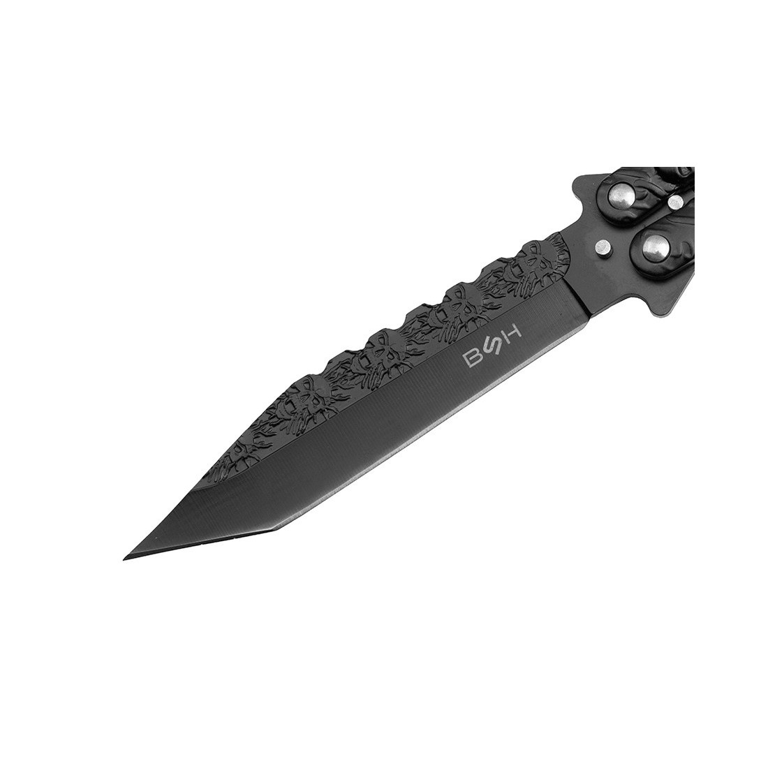 Mroczny nóż motylkowy od marki BSH ADVENTURE to doskonałe narzędzie do wykonywania trików i akrobacji.