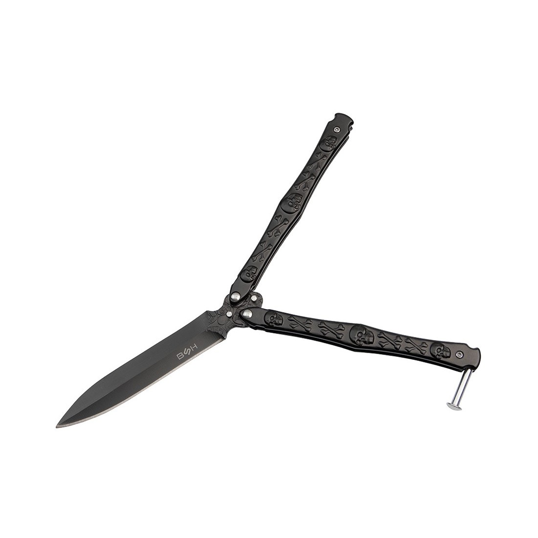 Czarny nóż motylkowy od marki BSH ADVENTURE to rewelacyjna broń do wykonywania efektownych trików i akrobacji.