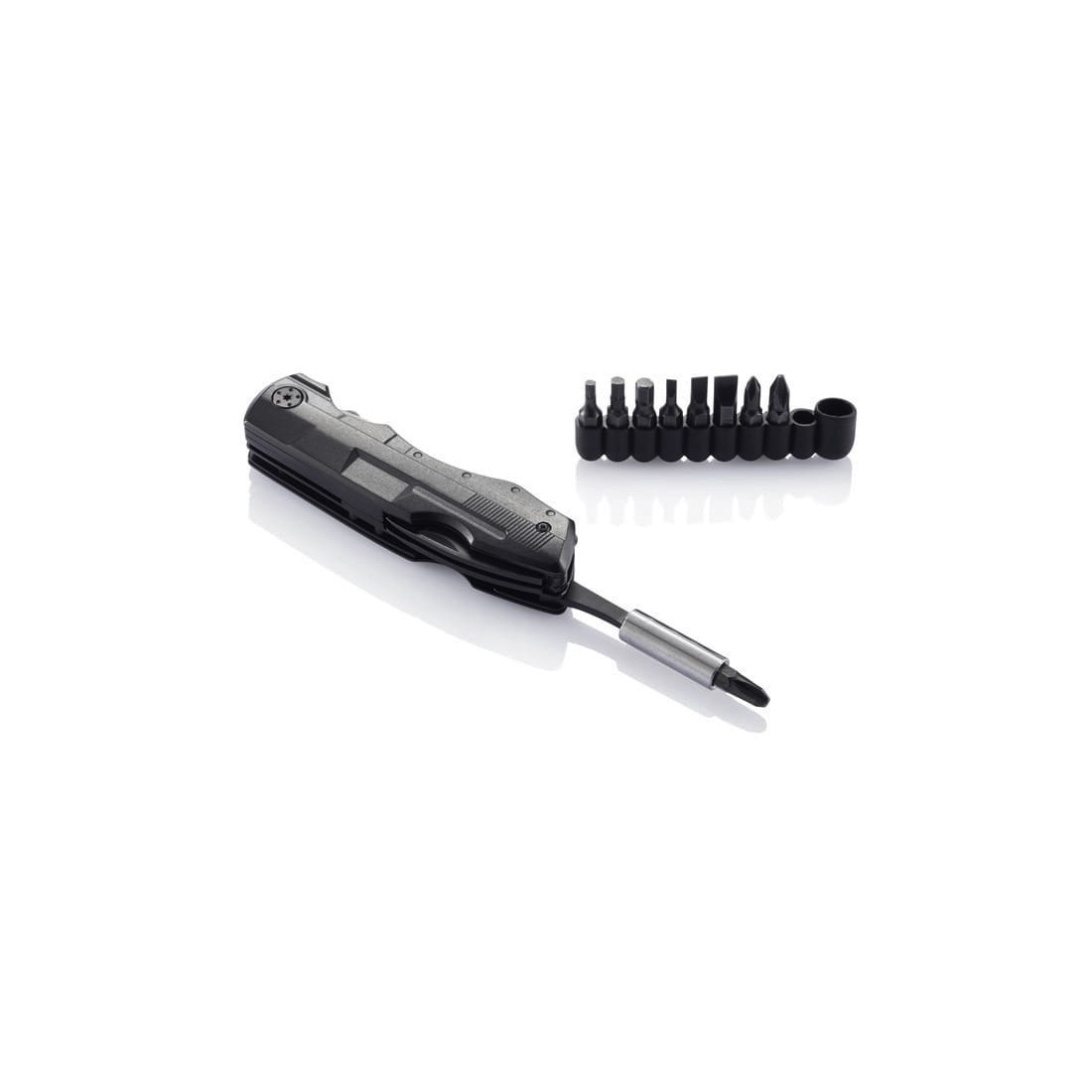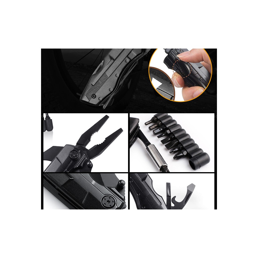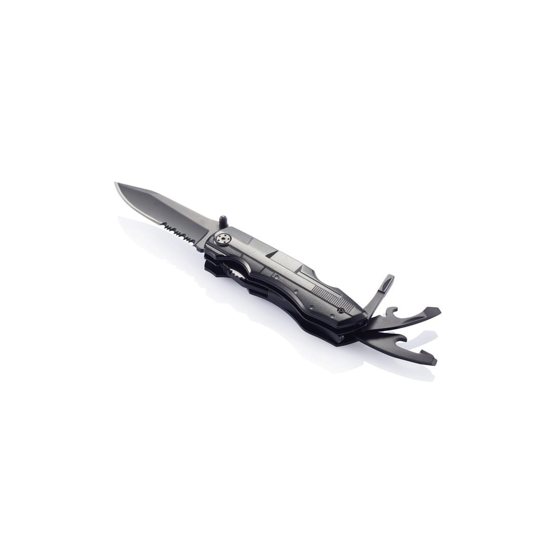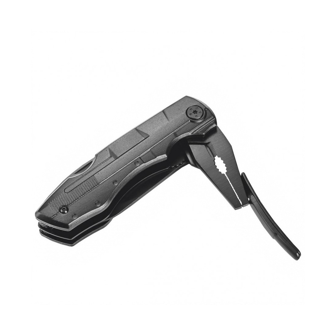 Multitool posiada aż 17 funkcji w tym między innymi nóż, kombinerki, śrubokręty i otwieracze do puszek oraz butelek.