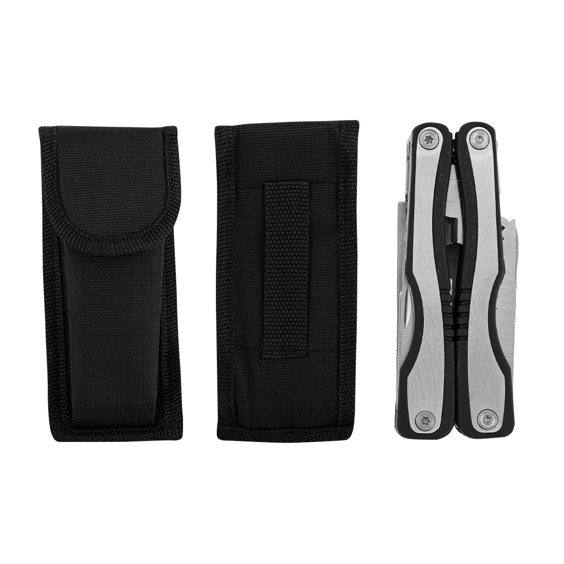 Jego optymalny rozmiar umożliwia wygodne przechowywanie w kieszeni, a dołączone etui z cordury pozwala na przypięcie multitoola do paska.