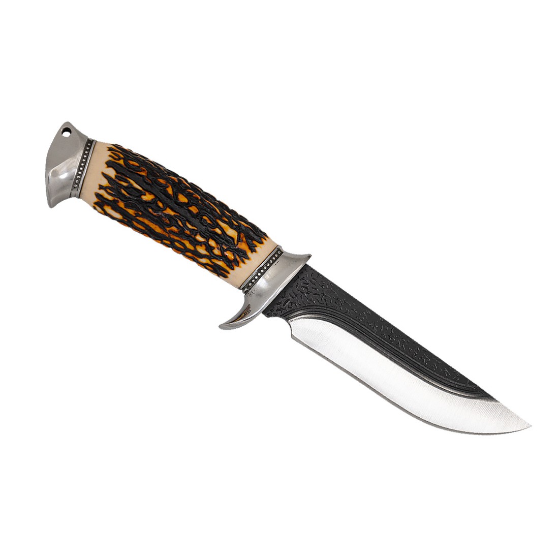 Ergonomicznie profilowana rękojeść została wykonana z eleganckiej i bardzo efektownej imitacji poroża jelenia.