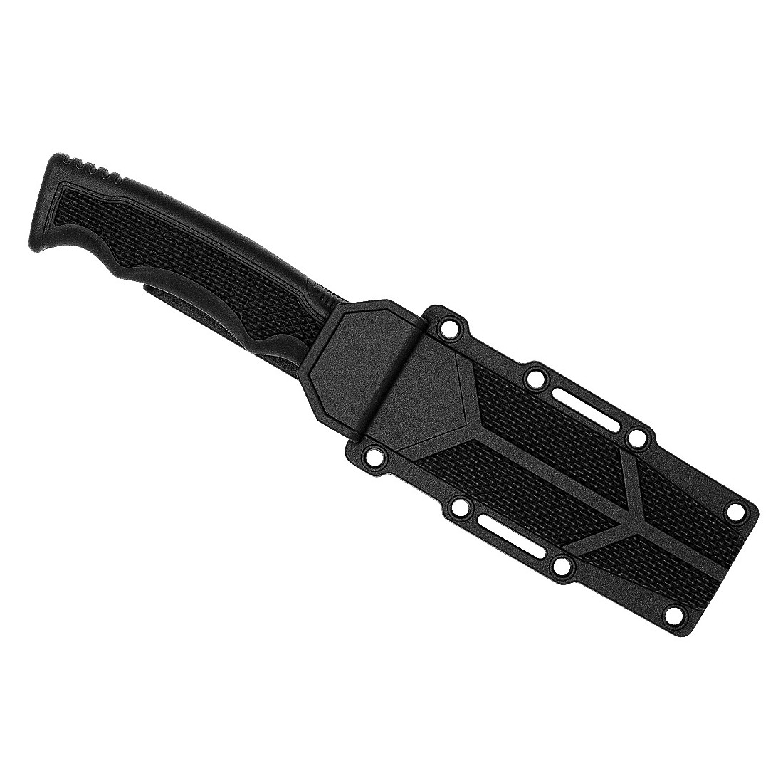 W zestawie znajduje się klasyczny, czarny pokrowiec z wytrzymałego materiału, który można przymocować do paska spodni, dzięki czemu nóż jest zawsze pod ręką, gotowy do natychmiastowego użycia.