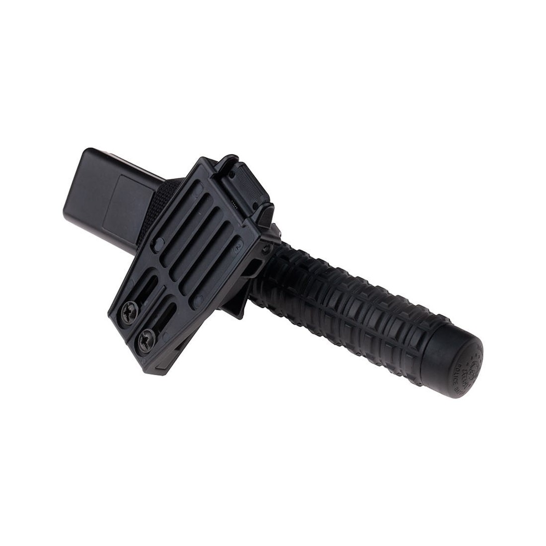 UBC-05 - uniwersalne mocowanie na pas (Quick Change System) z mechanizmem wsuwania umożliwiające szybką wymianę uchwytu na pałkę na inne wyposażenie z mechanizmem rotującym. Mocowanie pozostaje na pasie - wystarczy wybrać nową kaburę i zamocować ją.