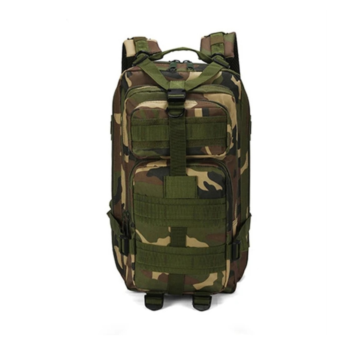 Plecak taktyczny o pojemności 28 litrów to wszechstronny model, idealny dla miłośników militariów, sportów ekstremalnych oraz do codziennego użytku. Inspirowany wojskowym sprzętem, wykonany jest z wytrzymałego poliestru 600D i wodoodpornego nylonu, z gumowaną powłoką wewnętrzną, co gwarantuje odporność na trudne warunki atmosferyczne i wilgoć. Doskonały na wyprawy plenerowe i survivalowe, sprawdzi się również jako plecak szkolny czy męski dodatek.