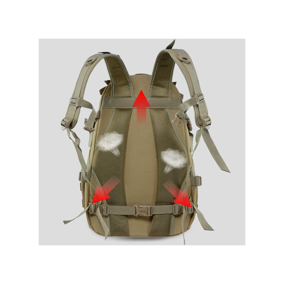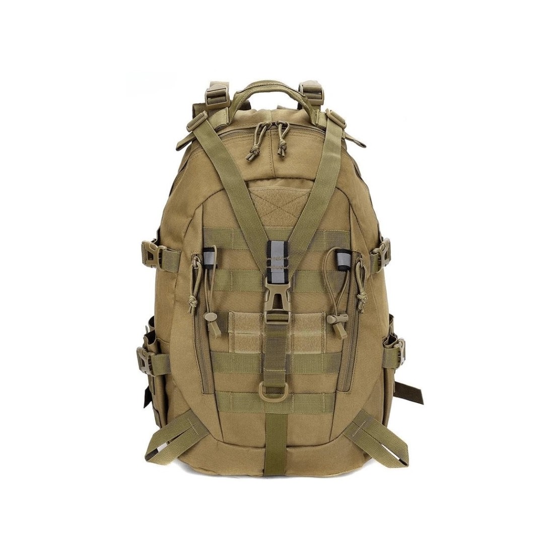 Bezpieczeństwo w nocy zwiększają dodatkowe odblaski, a dwa zapięcia na klatce piersiowej i regulowane szelki gwarantują stabilne i komfortowe dopasowanie. Plecak jest także wyposażony w system mocowania MOLLE z przodu i po bokach oraz rzep identyfikacyjny na naszywki, flagi i patche. Dwa ukryte otwory umożliwiają wygodne prowadzenie kabli lub wężyka z wodą.