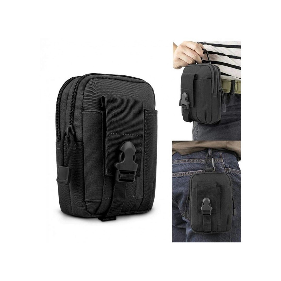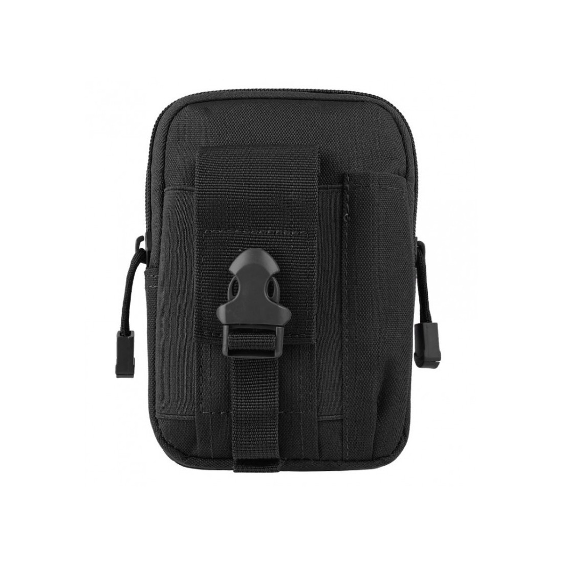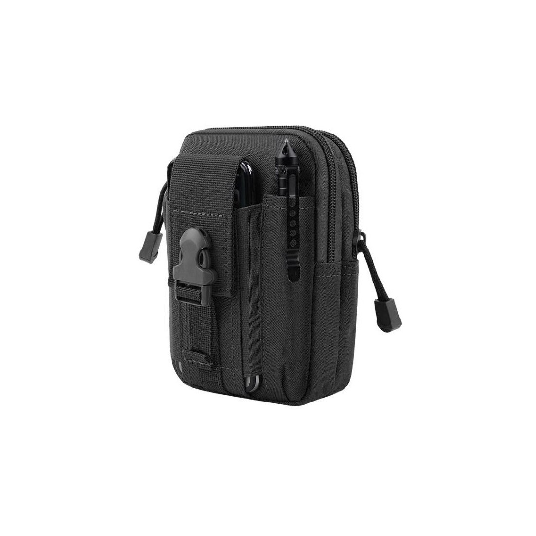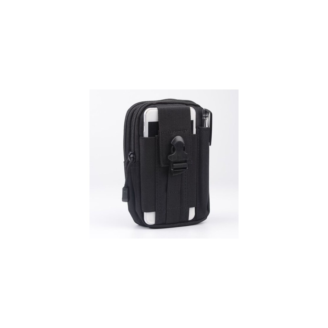Niezwykle użyteczna saszetka taktyczna w kolorze czarnym z miejscem na telefon komórkowy.