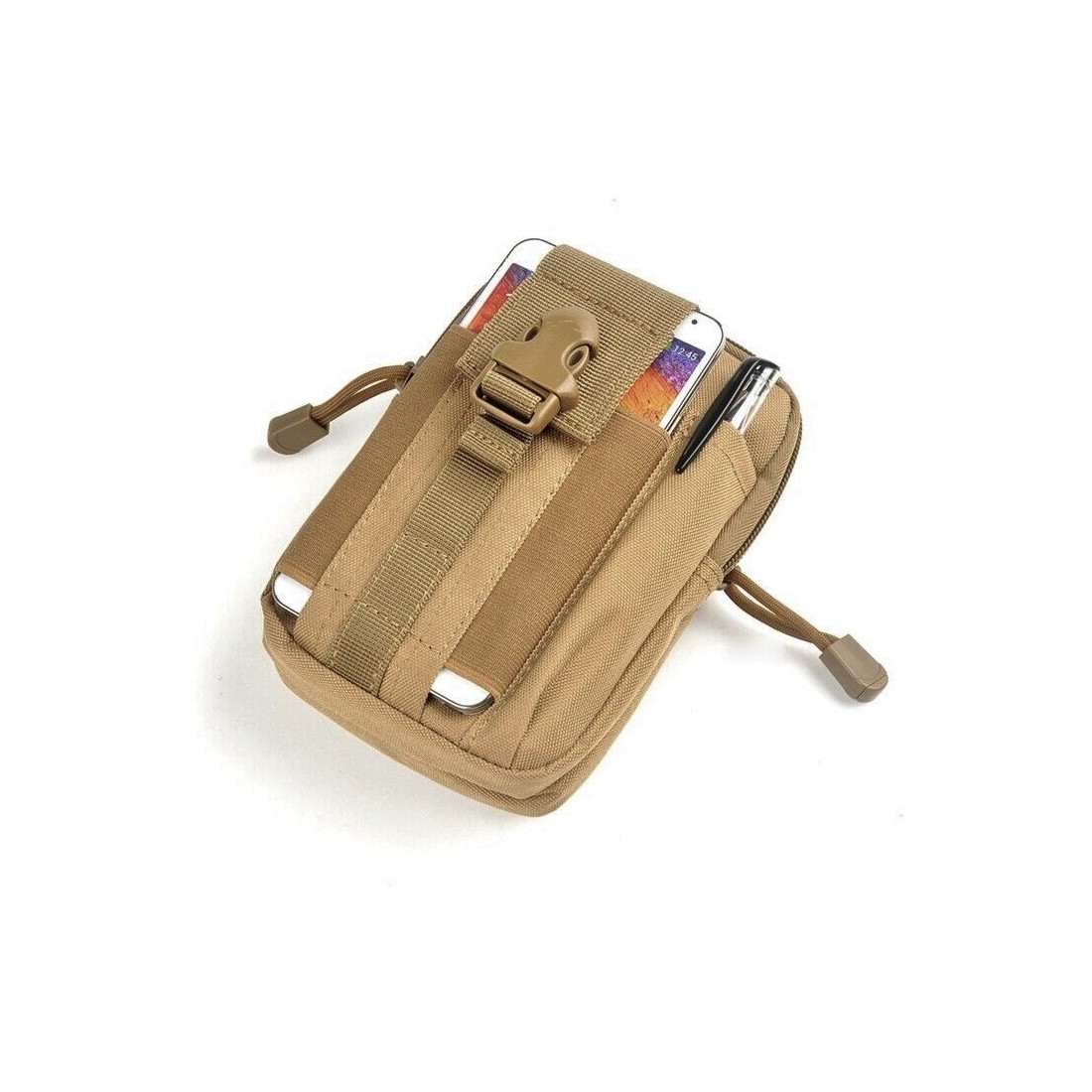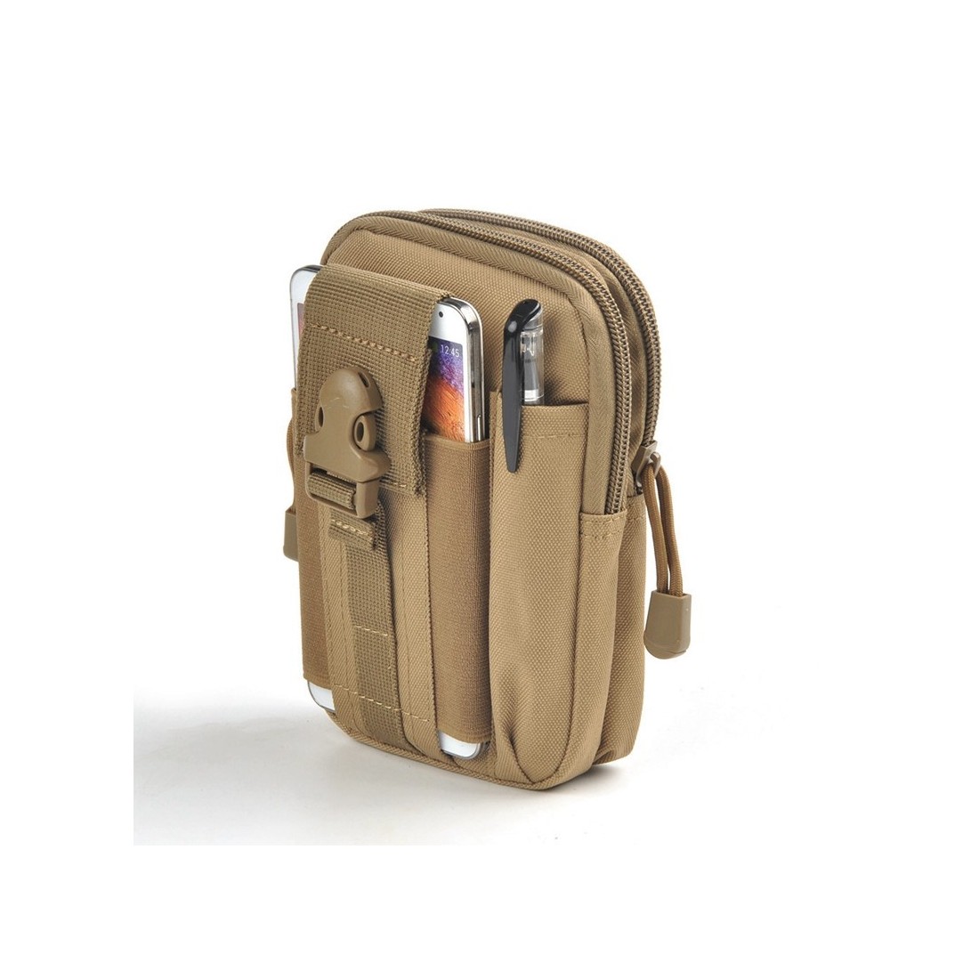 Niezwykle użyteczna saszetka taktyczna w kolorze sand z miejscem na telefon komórkowy.