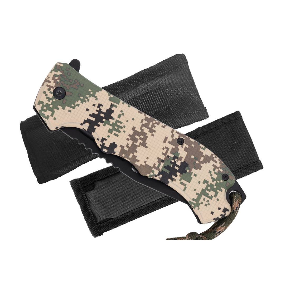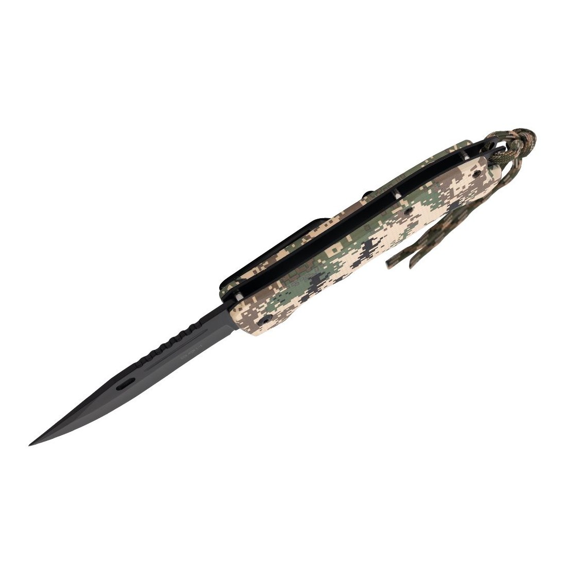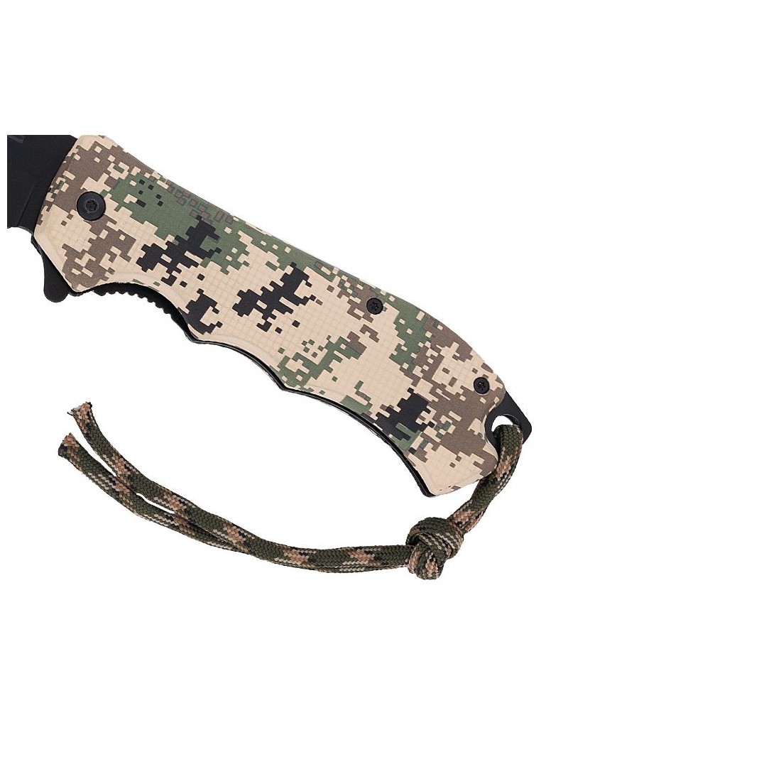 Rękojeść oraz linka są w kolorze wojskowego kamuflażu.