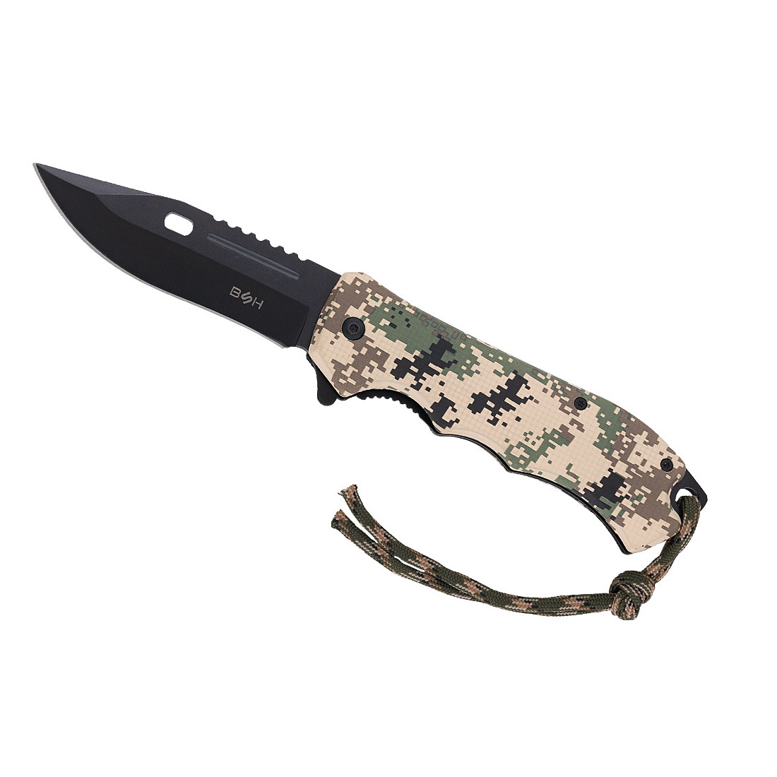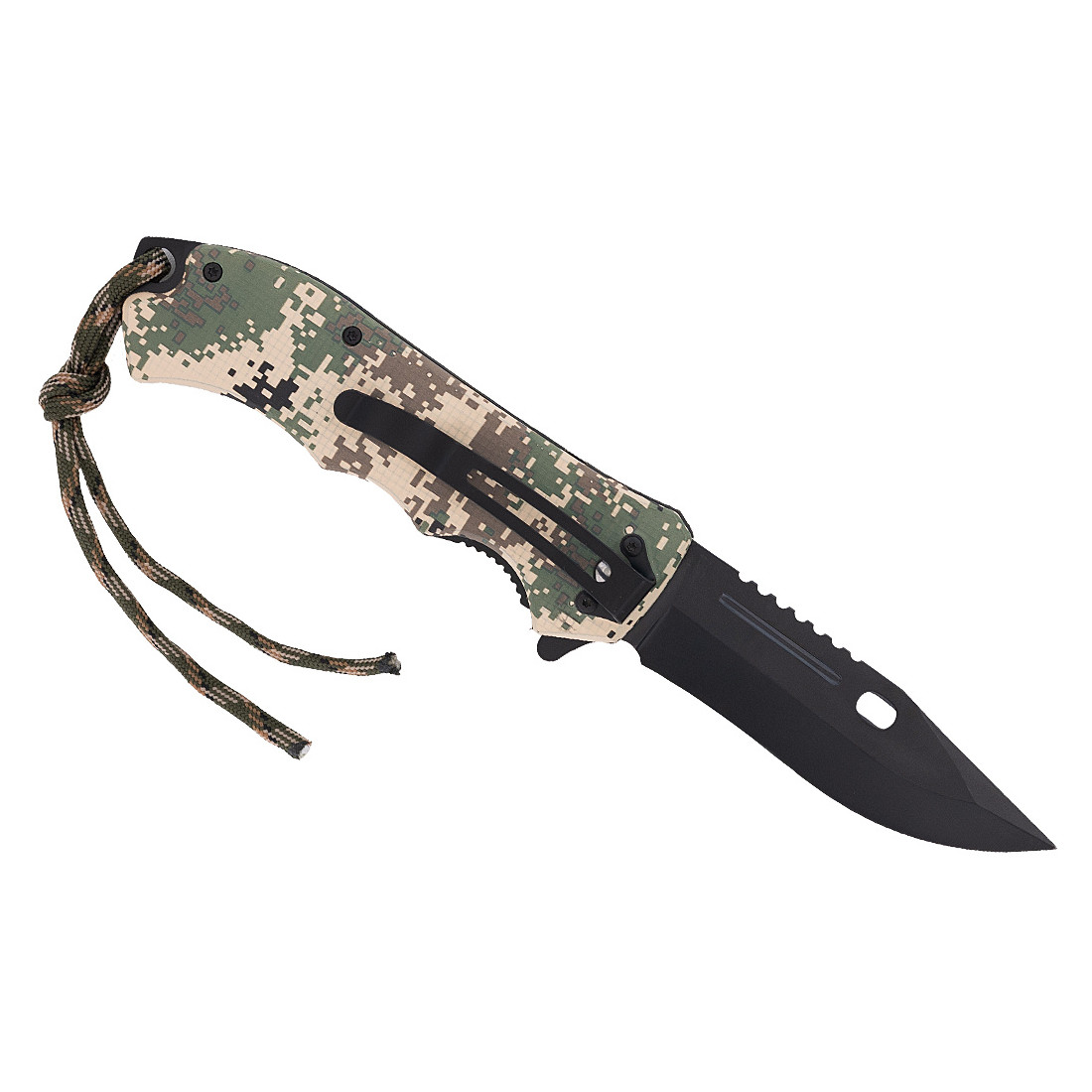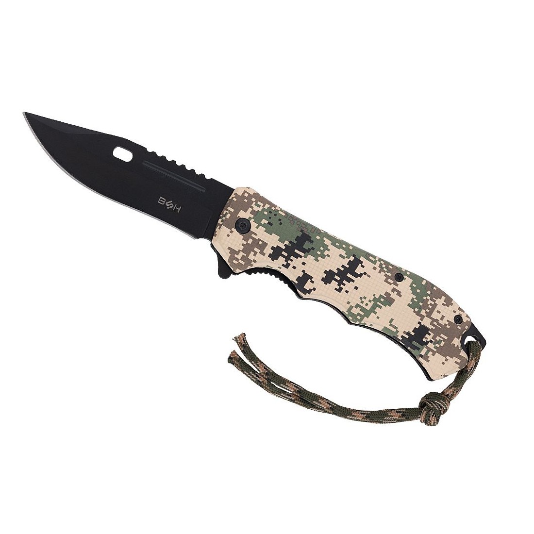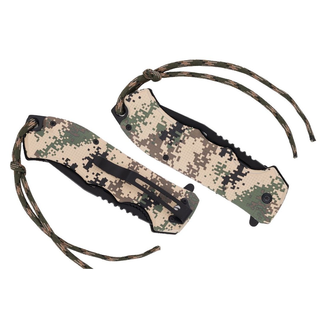 Rękojeść oraz linka są w kolorze wojskowego kamuflażu.