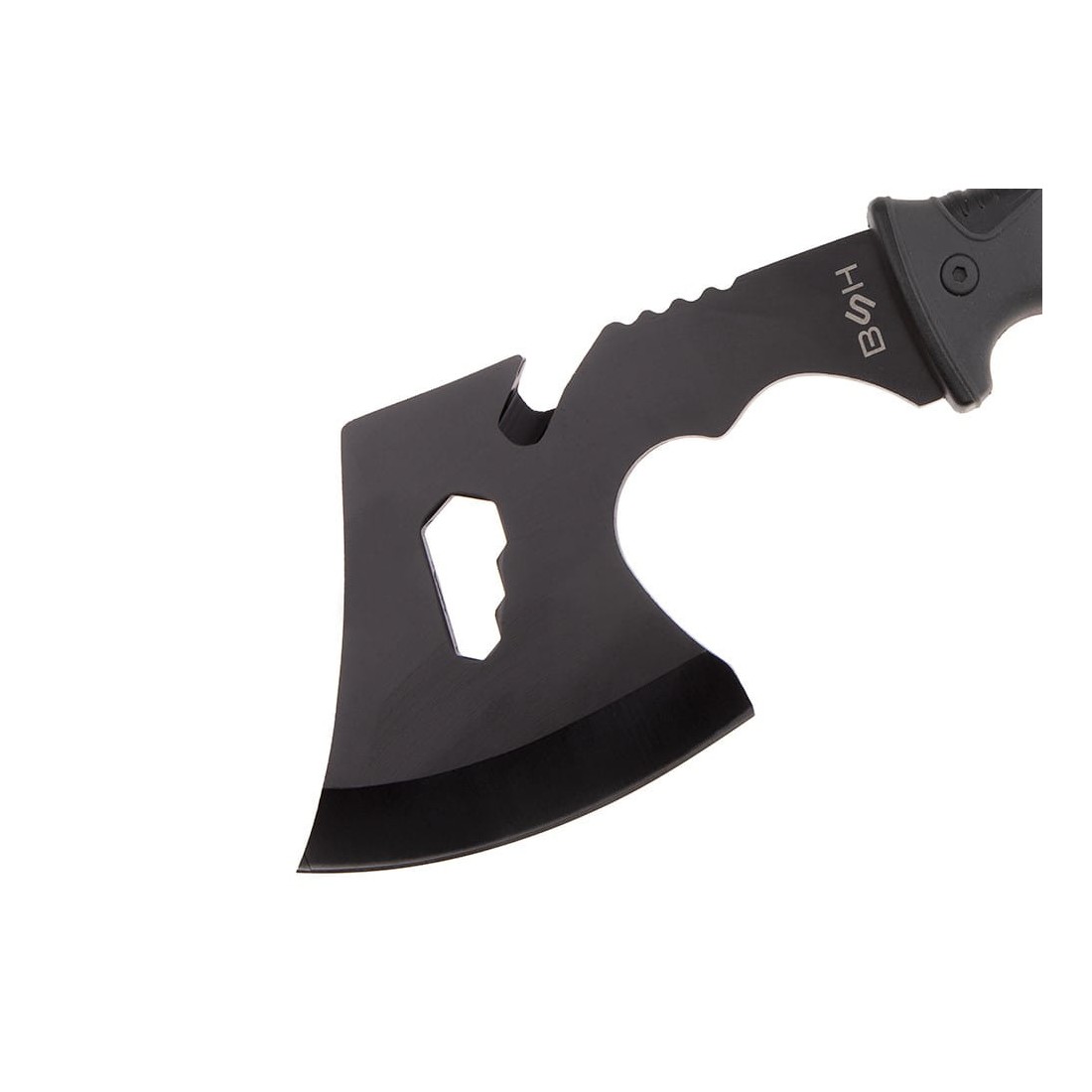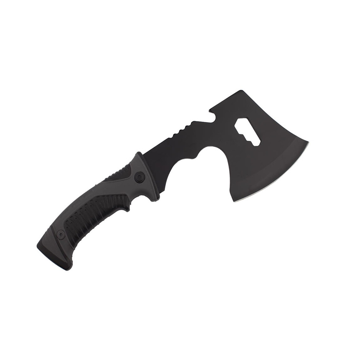 Siekierka została wyposażona w zestaw kluczy oczkowych oraz ostrze do cięcia żyłek i lin.