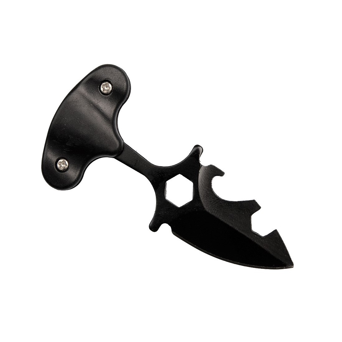 Z jednej strony został wyposażony w klasyczne ostrze typu dagger, z drugiej w otwieracz do kapsli oraz klucz płaski.