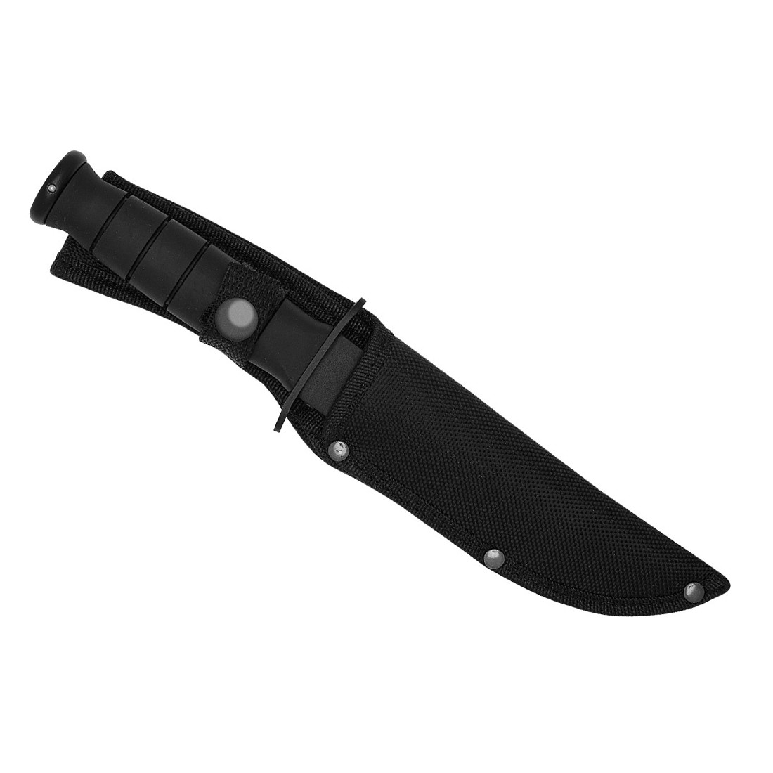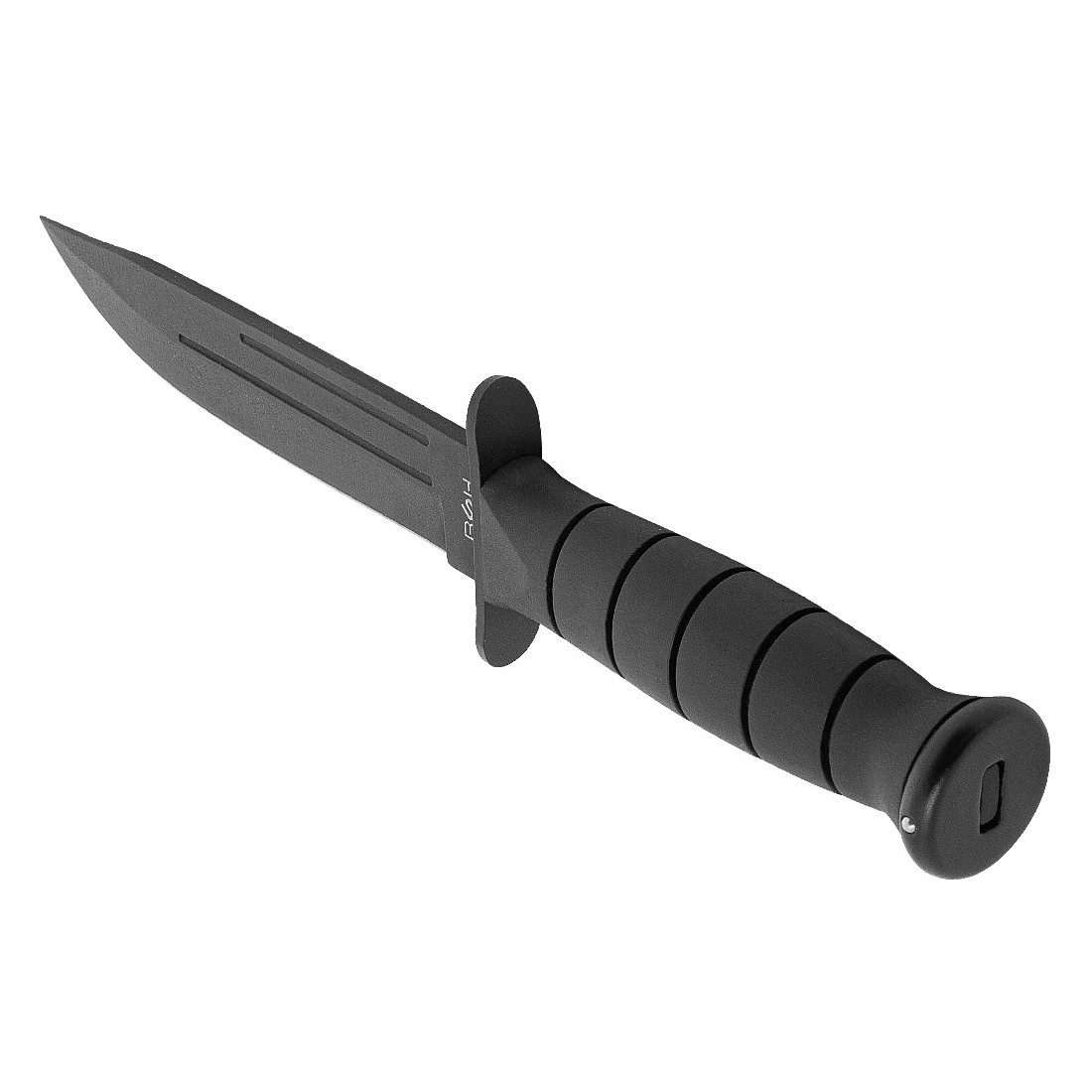 Nóż wojskowy posiada ergonomiczną rękojeść z metalu i antypoślizgowego tworzywa.