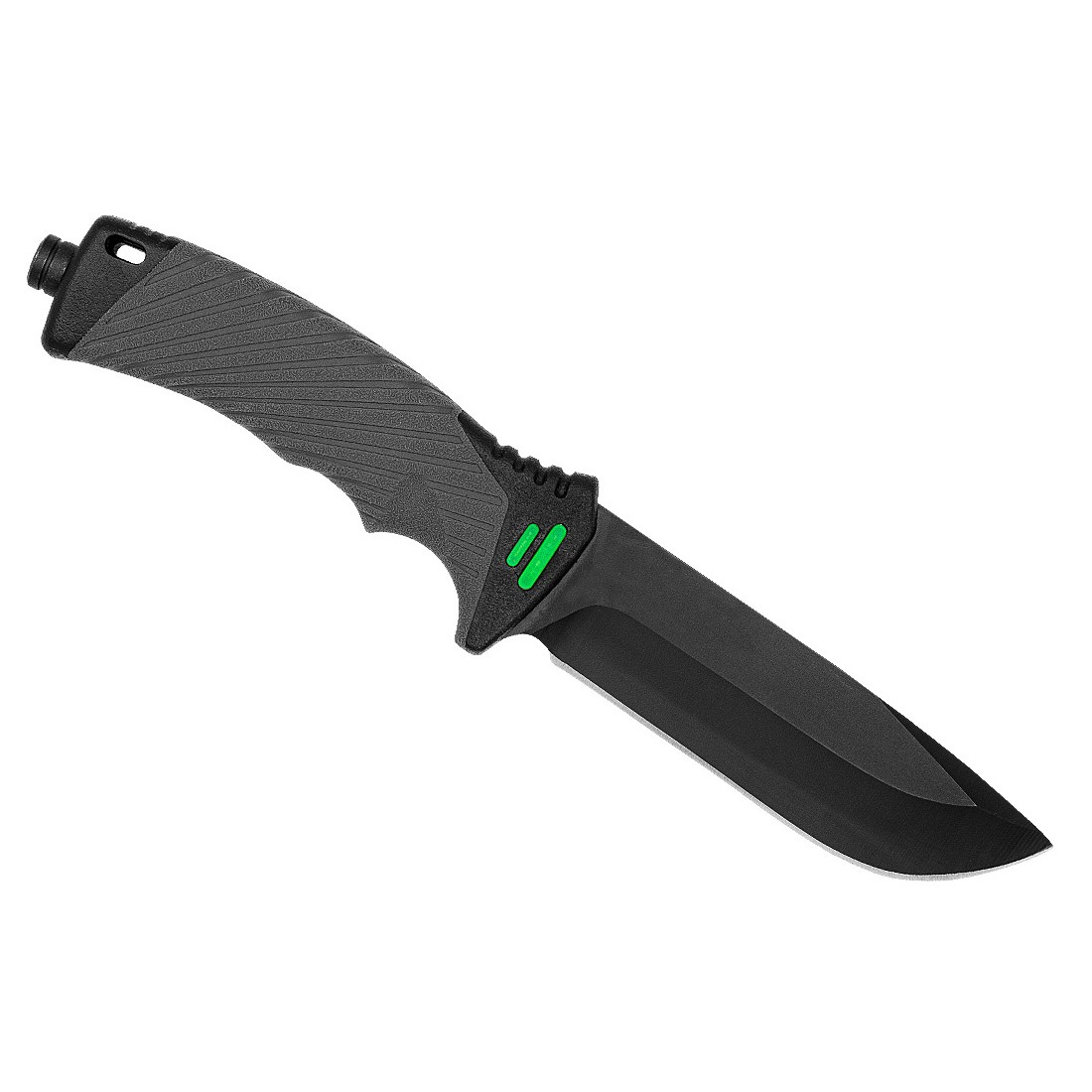 Jego głownia o profilu drop point, pokryta dodatkową czarną powłoką ochronną, eliminuje odblaski oraz wzmacnia odporność na korozję, co czyni go wyjątkowo praktycznym w różnych środowiskach.