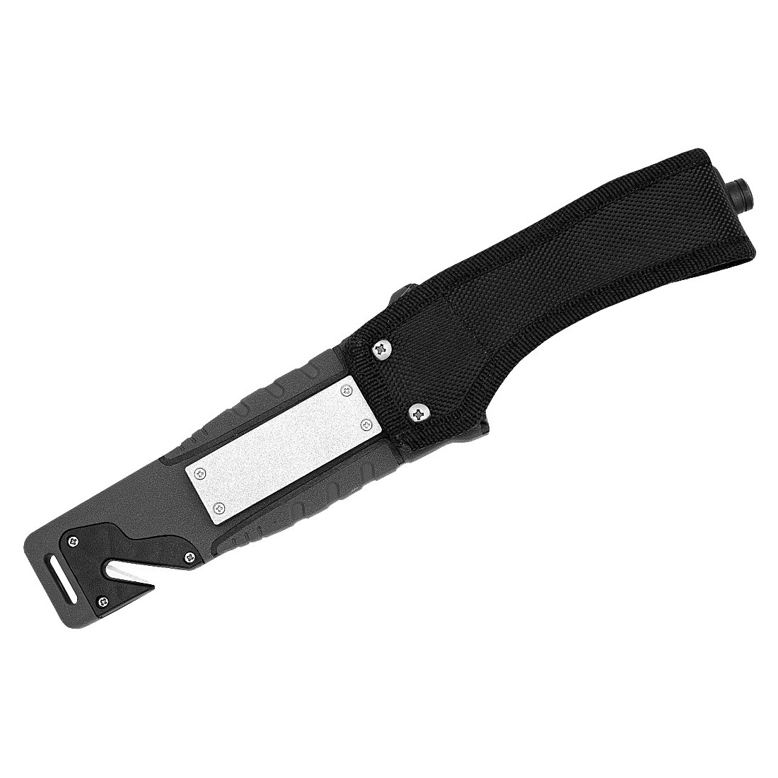 Wyposażony jest również w krzesiwo z gwizdkiem, pozwalającym na rozpalenie ognia i przywołanie pomocy w sytuacjach kryzysowych, a także osełkę do szybkiego podostrzenia noża nawet w terenie.