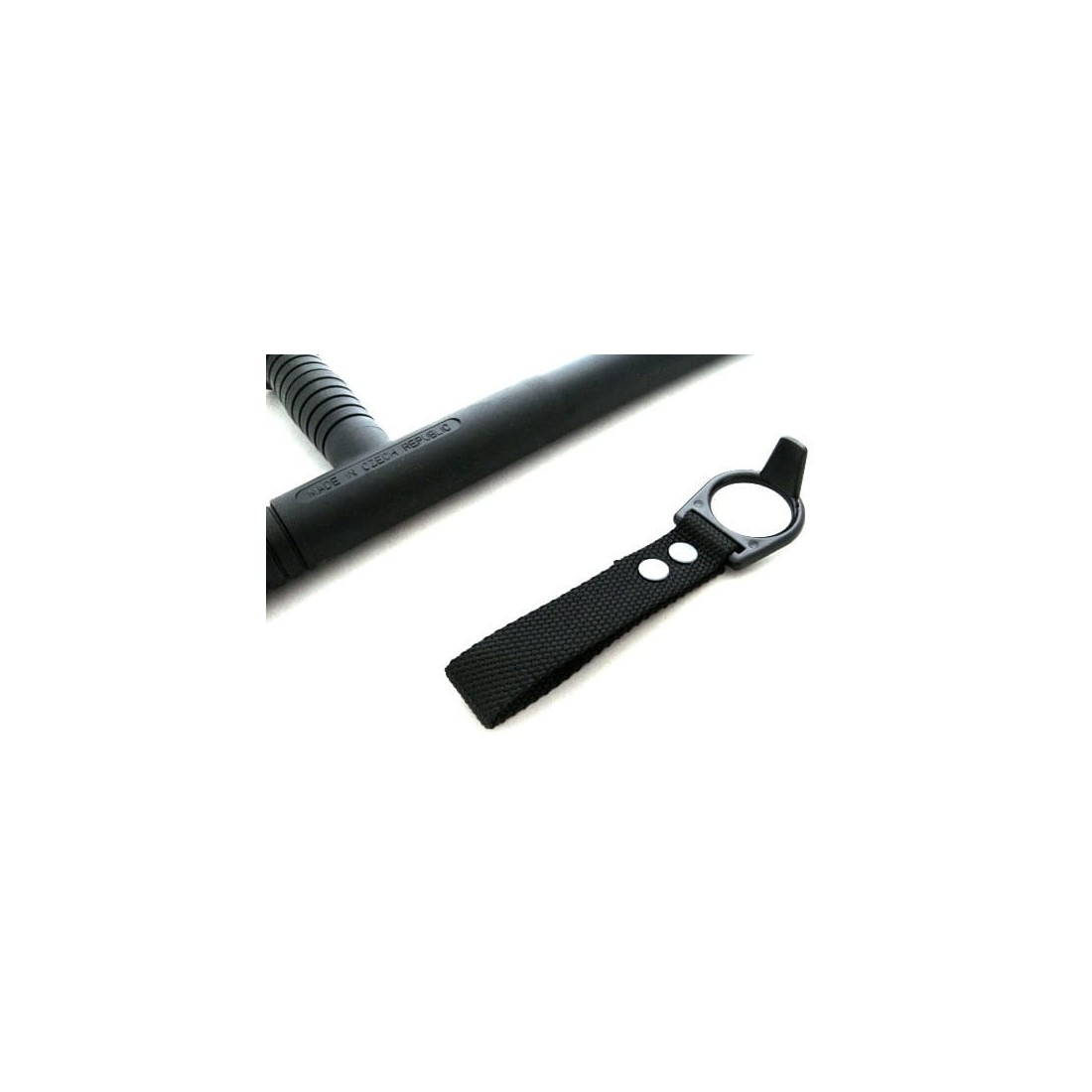 W komplecie uchwyt TR-02 montowany do pasa pozwalający noszenie pałki w pozycji pionowej.