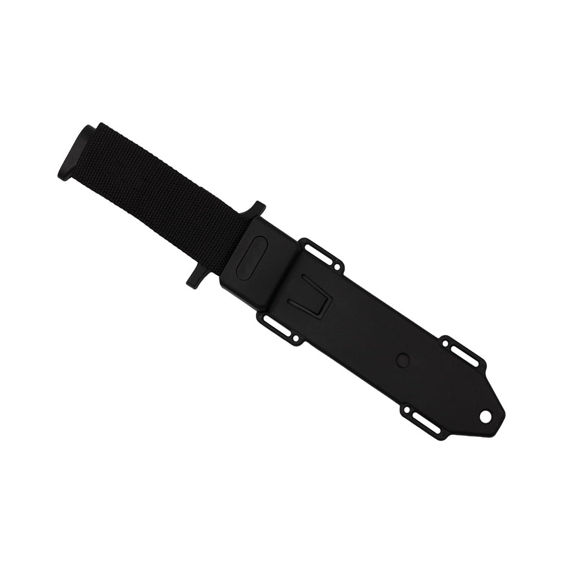 Nóż posiada czarną, klasyczną kaburę z tworzywa, którą łatwo jest przymocować do oporządzenia czy paska.